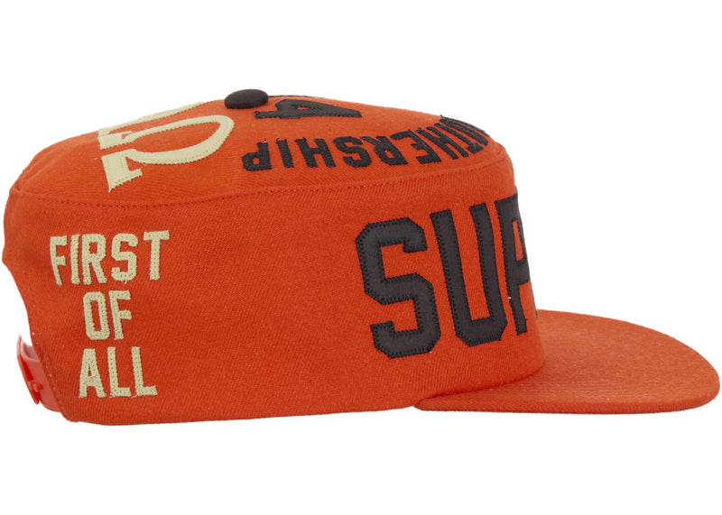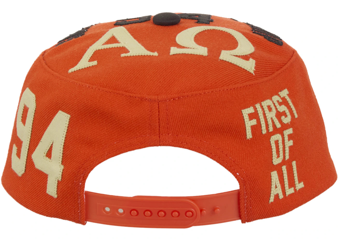 The Supreme Alpha Omega Pillbox Hat Orange is now available at Side Kicks!