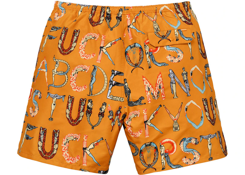 The Supreme Alphabet Water Short Orange is now available at Side Kicks!