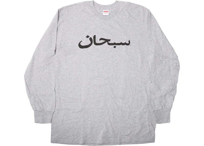 The Supreme Arabic Logo L/S Tee Heather Grey is now available at Side Kicks!