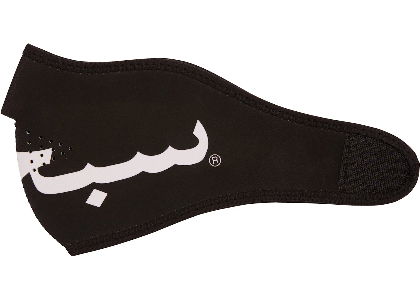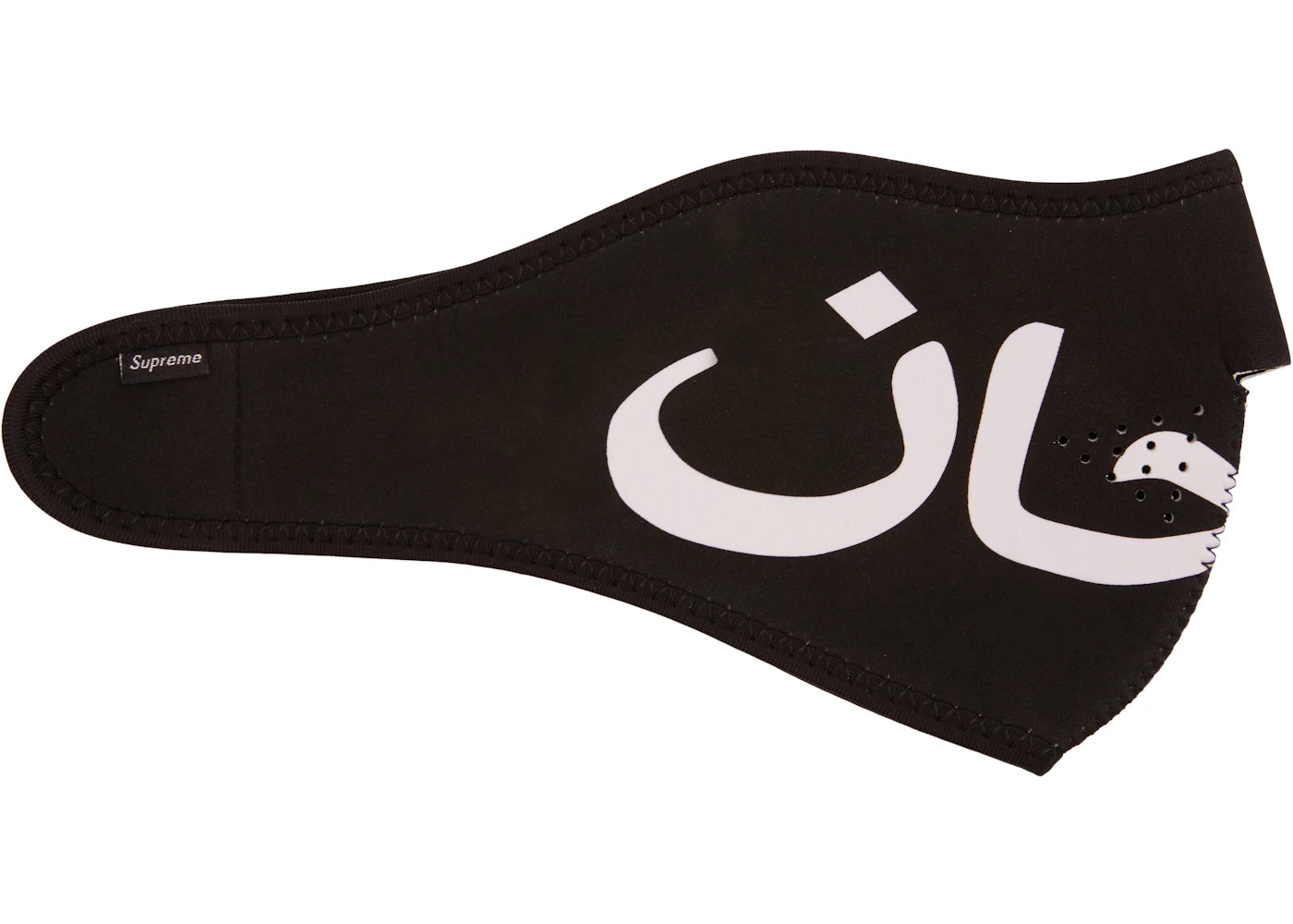 The Supreme Arabic Logo Neoprene Facemask Black is now available at Side Kicks!