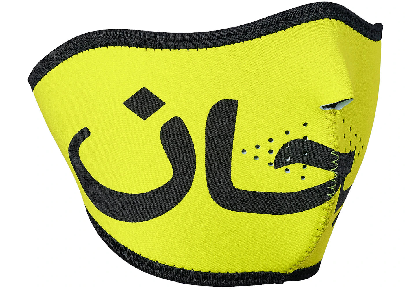 Supreme Arabic Logo Neoprene Facemask Hi Vis Yellow