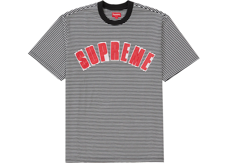 The Supreme Arc Applique S/S S/S Top White Stripe is now available at Side Kicks!