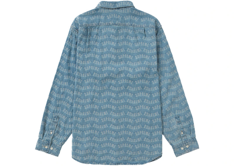 The Supreme Arc Jacquard Denim Shirt Blue is now available at Side Kicks!