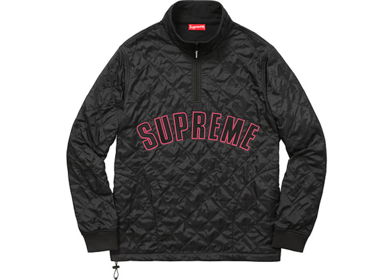 The Supreme Arc Logo Quilted Half Zip Pullover Black is now available at Side Kicks!