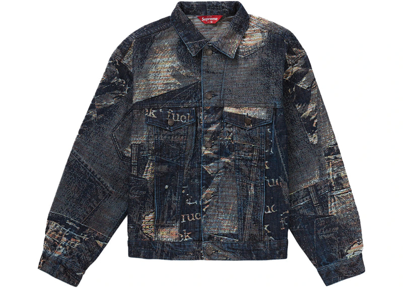 Supreme Archive Denim Jacquard Trucker Jacket Blue