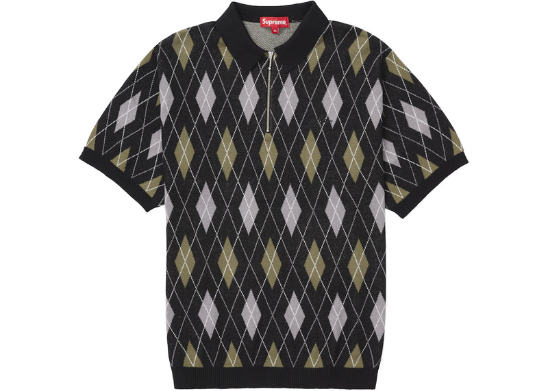 The Supreme Argyle Zip Polo Black is now available at Side Kicks!