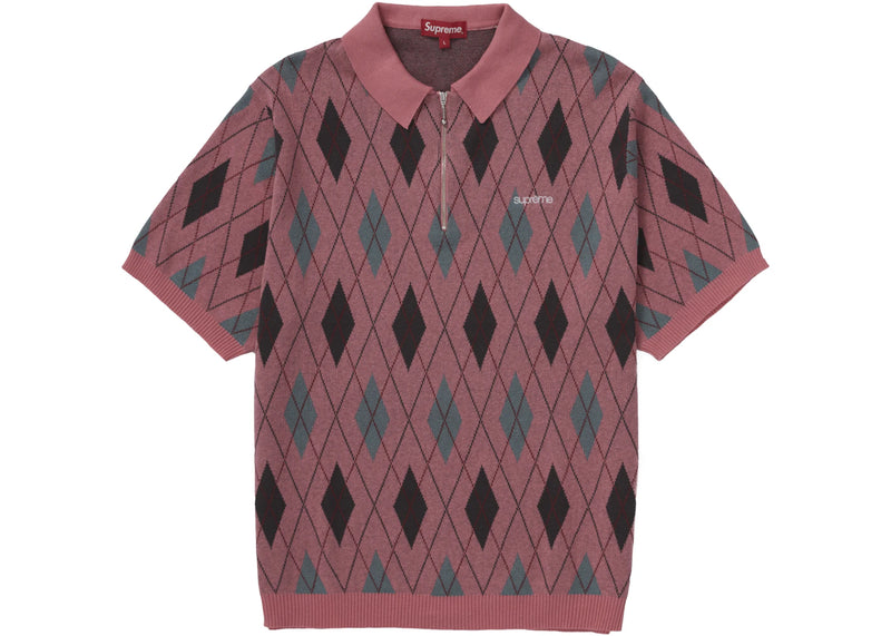 The Supreme Argyle Zip Polo Dusty Magenta is now available at Side Kicks!