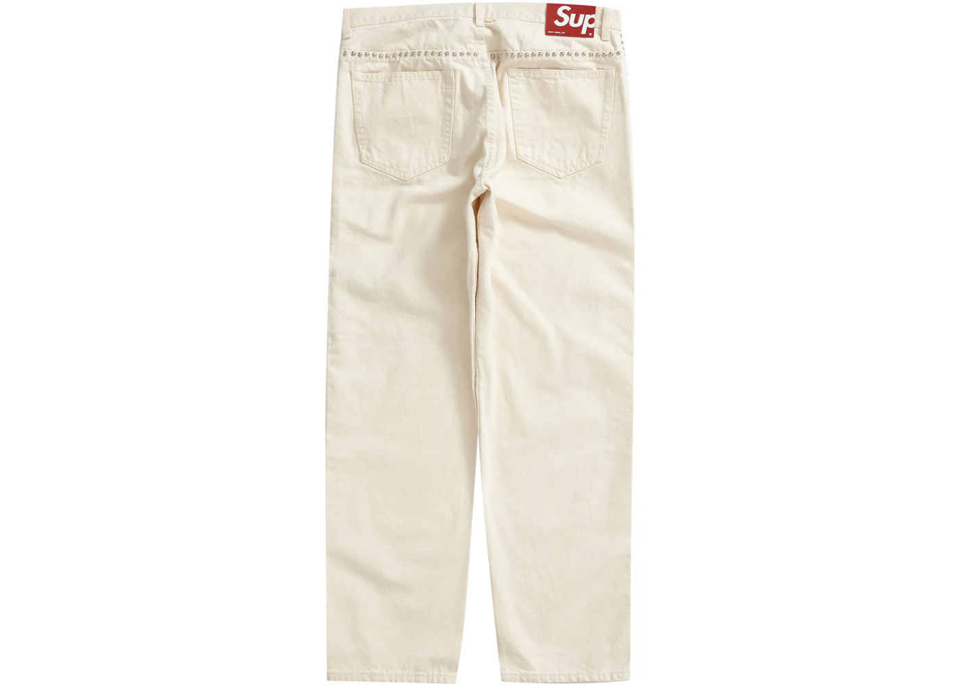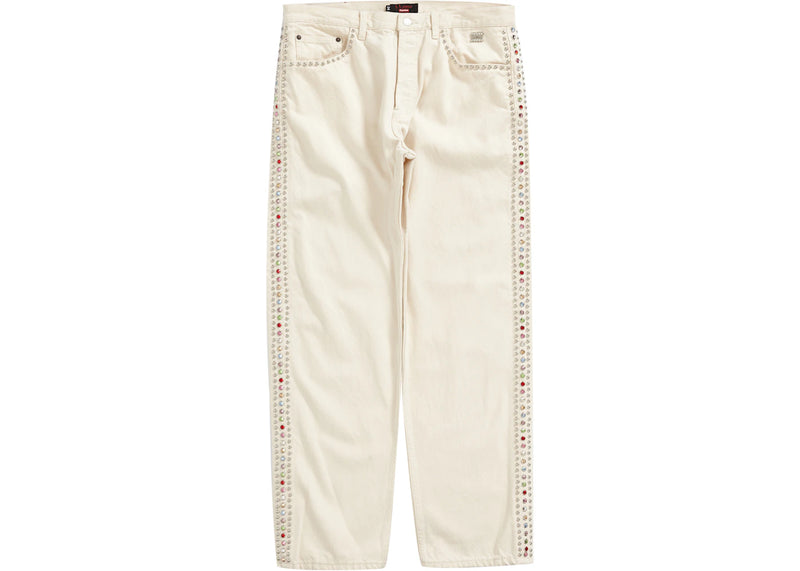 The Supreme B.B. Simon Studded Regular Jean Natural is now available at Side Kicks!