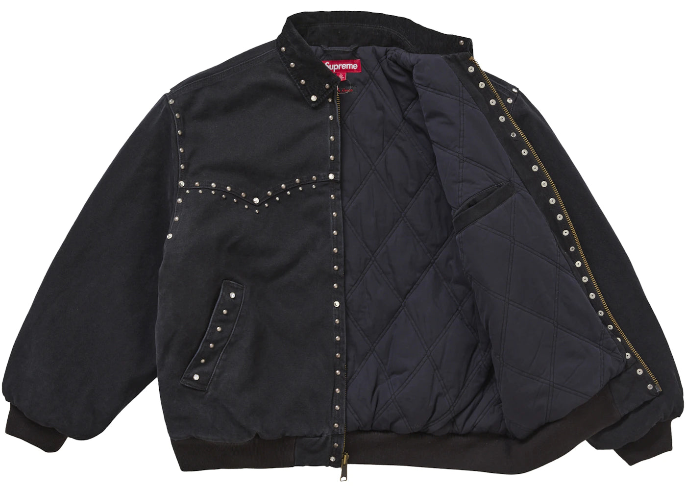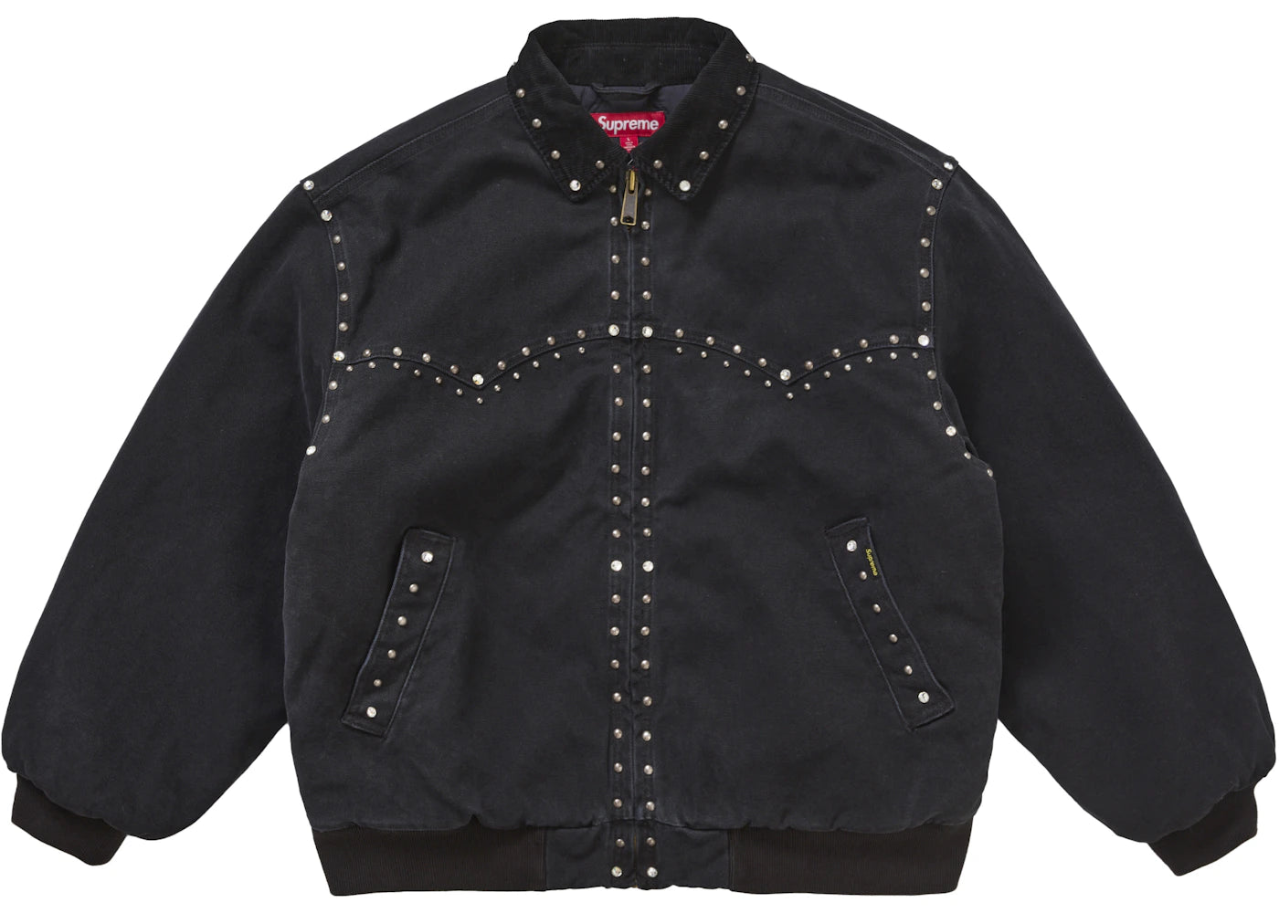 The Supreme b.b. Simon Studded Work Jacket Black is now available at Side Kicks!