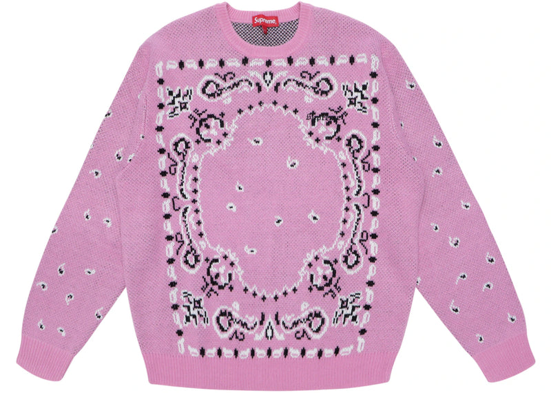 The Supreme Bandana Sweater Light Pink is now available at Side Kicks!