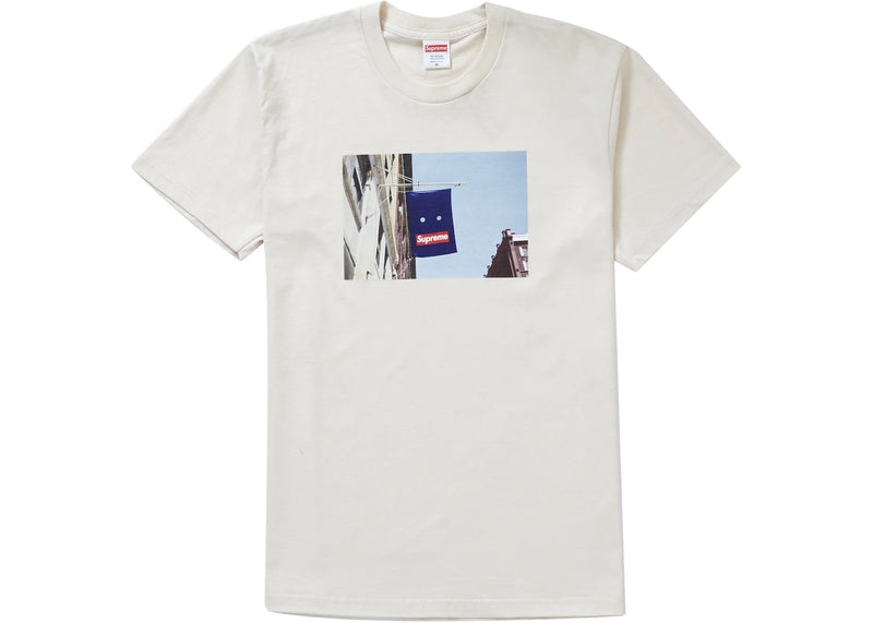 The Supreme Banner Tee Natural is now available at Side Kicks!