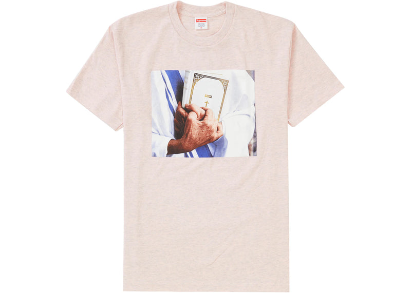 The Supreme Bible Tee Heather Light Pink is now available at Side Kicks!