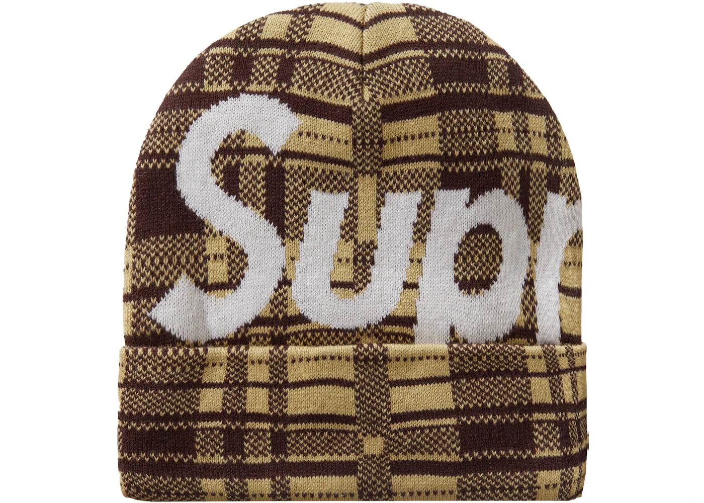 Supreme Big Logo Beanie Beanie (FW23) Tan Plaid