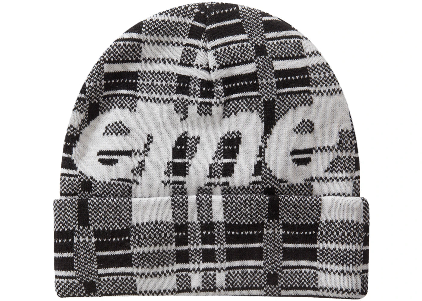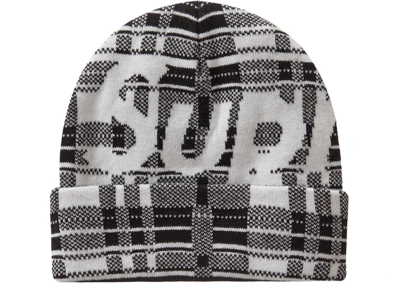 The Supreme Big Logo Beanie Beanie (FW23) White Plaid is now available at Side Kicks!