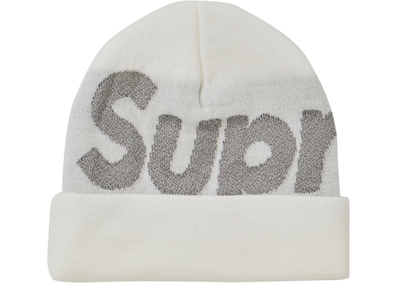 The Supreme Big Logo Beanie (FW18) White is now available at Side Kicks!