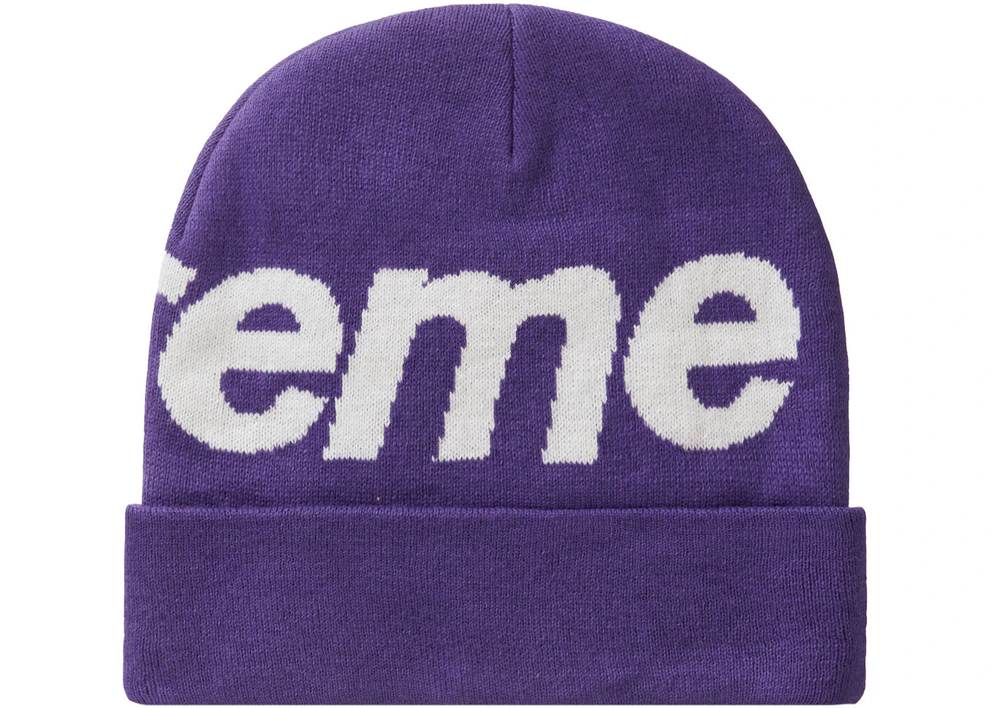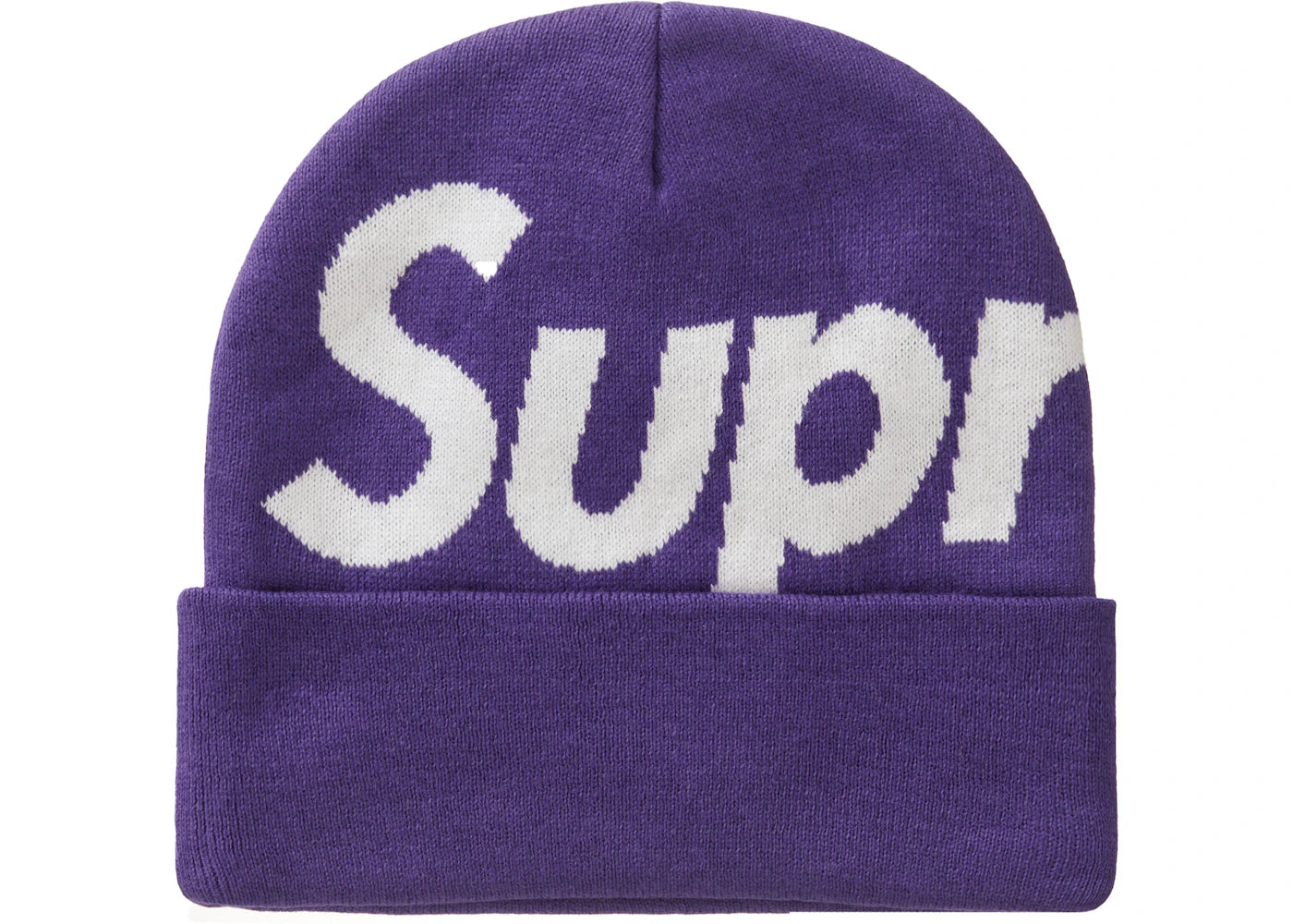 The Supreme Big Logo Beanie (FW23) Dark Purple is now available at Side Kicks!
