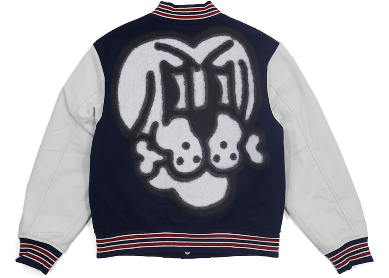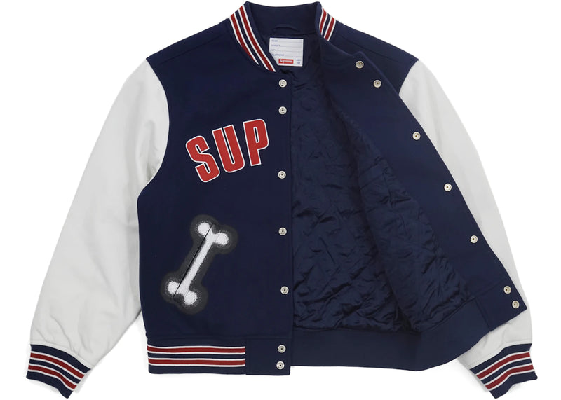 The Supreme Bone Varsity Jacket Navy is now available at Side Kicks!