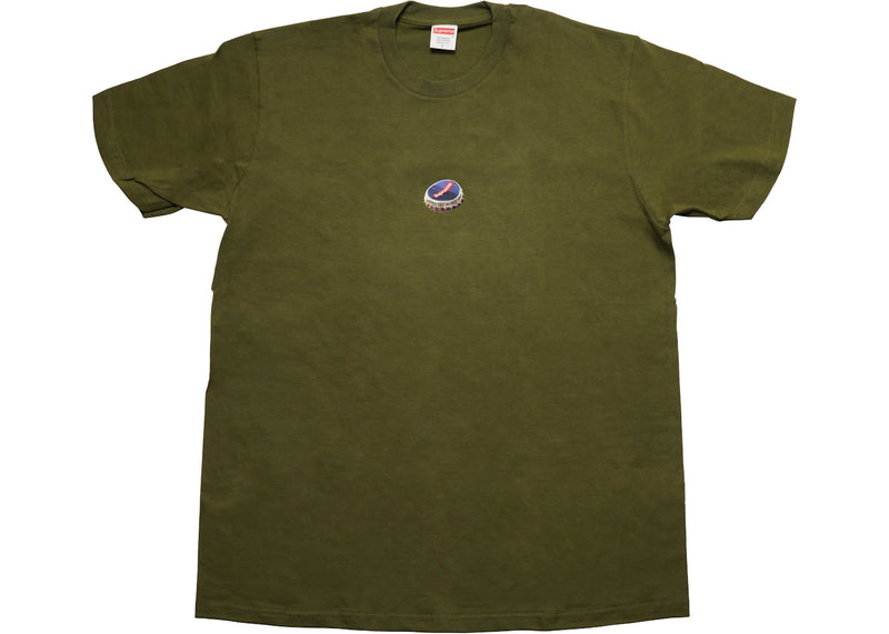 The Supreme Bottle Cap Tee Olive is now available at Side Kicks!
