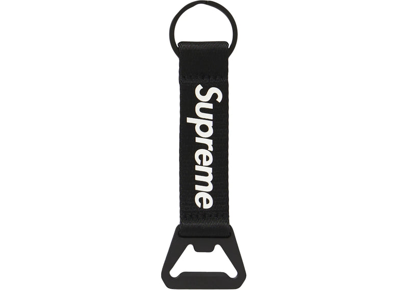 The Supreme Bottle Opener Webbing Keychain Black is now available at Side Kicks!