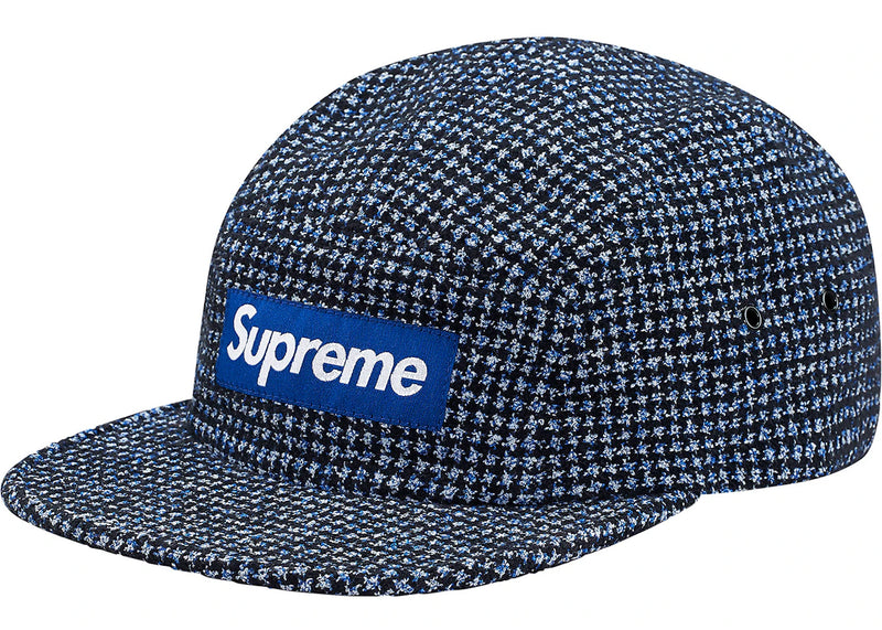 The Supreme Boucl Houndstooth Camp Cap Navy is now available at Side Kicks!