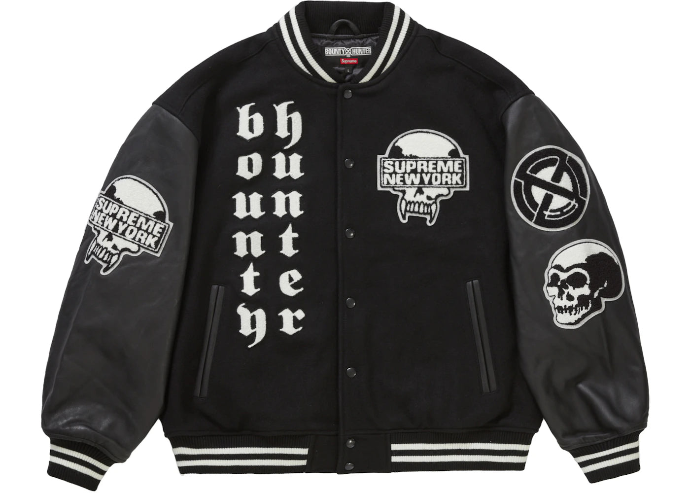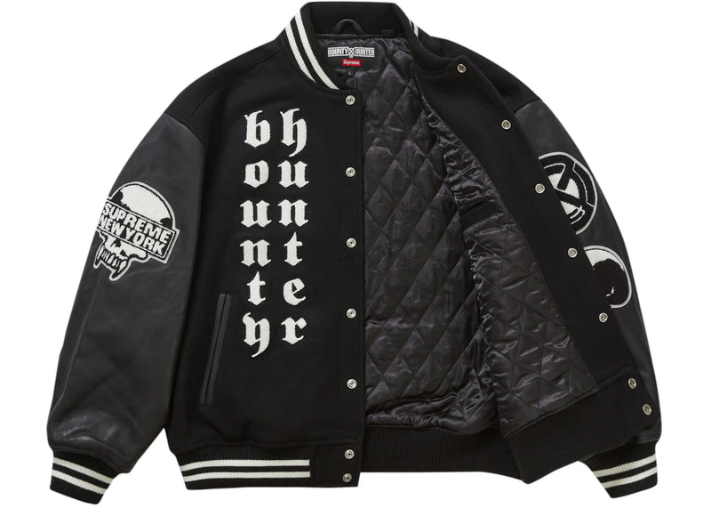 The Supreme Bounty Hunter Varsity Jacket Black is now available at Side Kicks!
