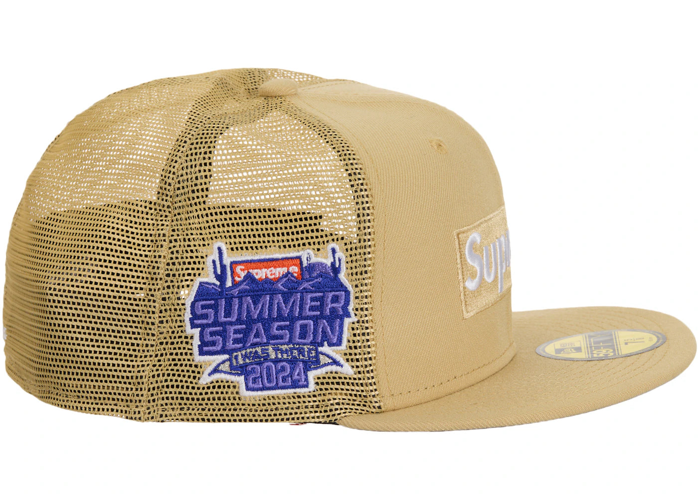The Supreme Box Logo Mesh Back New Era Cap (SS24) Light Gold is now available at Side Kicks!
