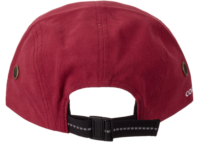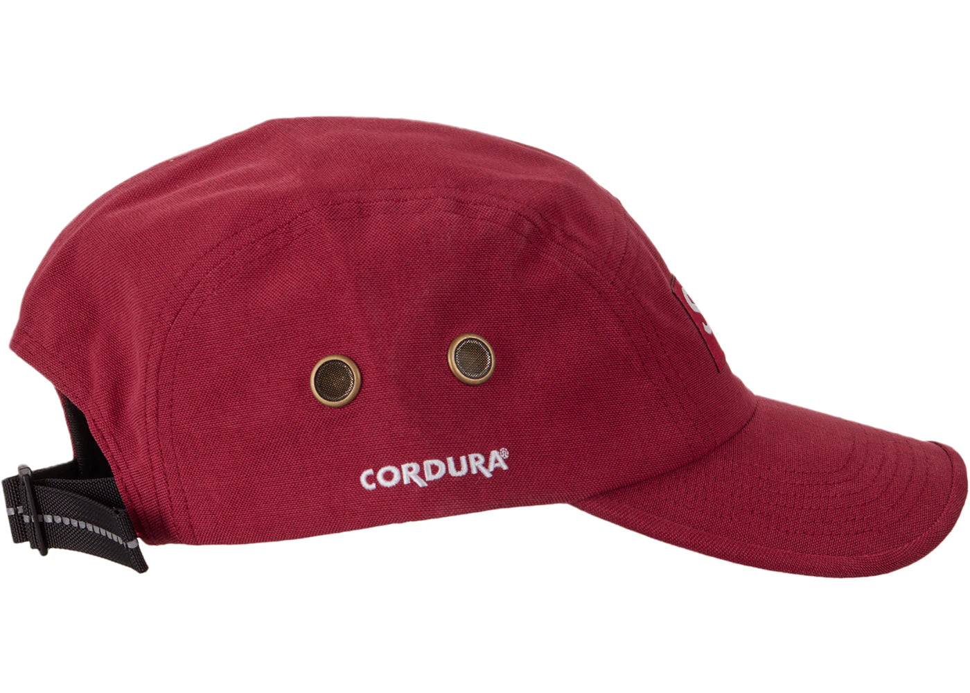 The Supreme Brushed Cordura Camp Cap Burgundy is now available at Side Kicks!