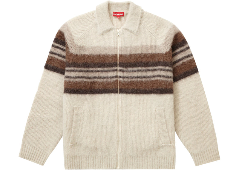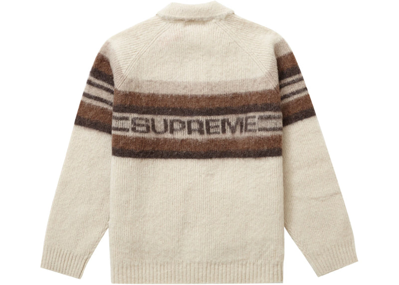 The Supreme Brushed Wool Zip Up Sweater Cream is now available at Side Kicks!
