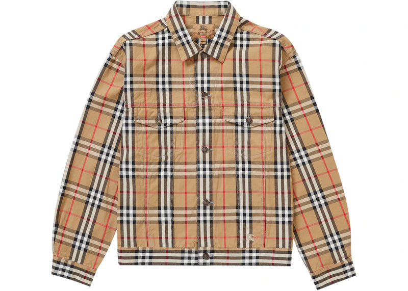 Supreme Burberry Denim Trucker Jacket Beige
