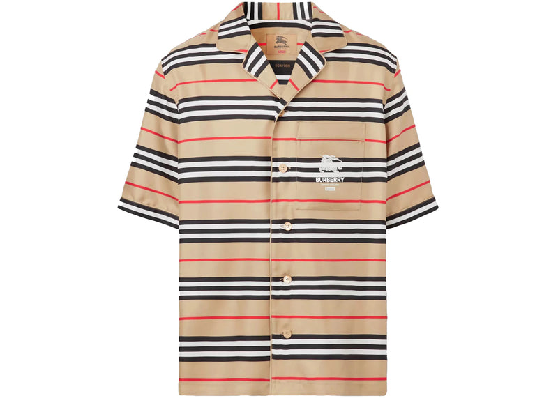 The Supreme Burberry Icon Silk Pajama Shirt Archive Beige is now available at Side Kicks!