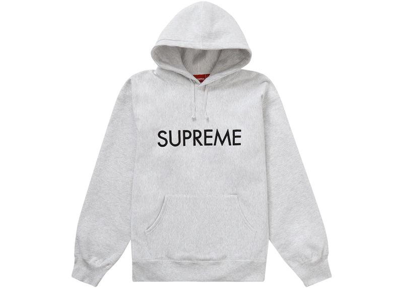 The Supreme Capital Hooded Sweatshirt Ash Grey is now available at Side Kicks!
