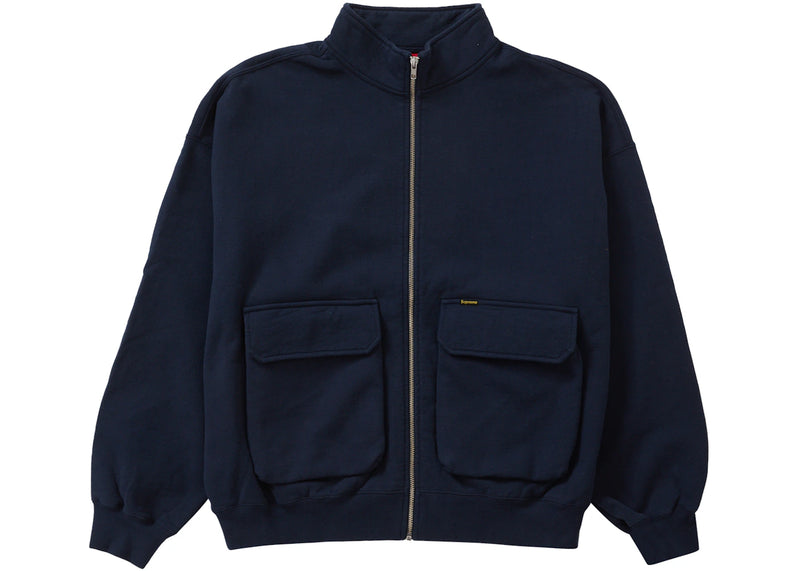The Supreme Cargo Pocket Zip Up Sweatshirt Navy is now available at Side Kicks!