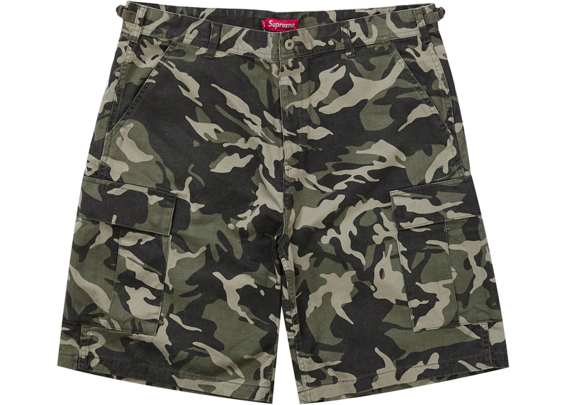 The Supreme Cargo Short (SS23) Olive Camo is now available at Side Kicks!