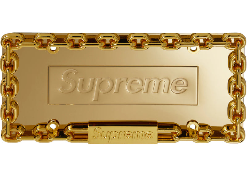 The Supreme Chain License Plate Frame Gold is now available at Side Kicks!