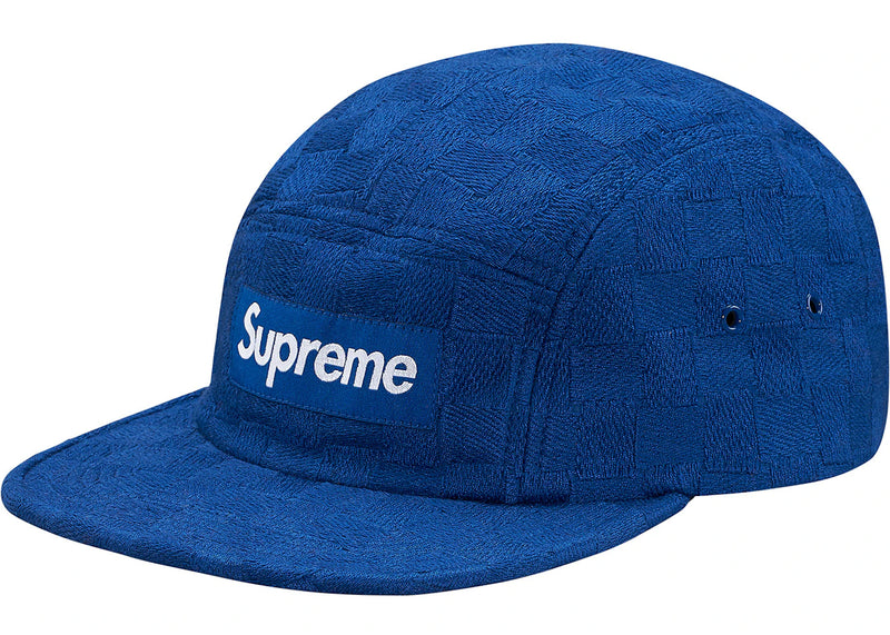 The Supreme Checker Weave Camp Cap Royal is now available at Side Kicks!