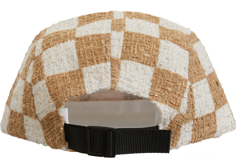 The Supreme Checkerboard Boucle Camp Cap Tan is now available at Side Kicks!