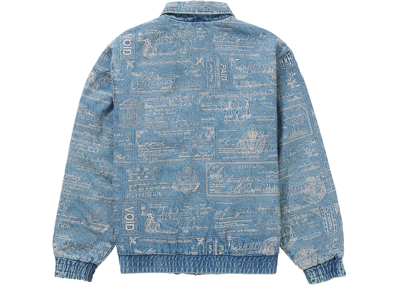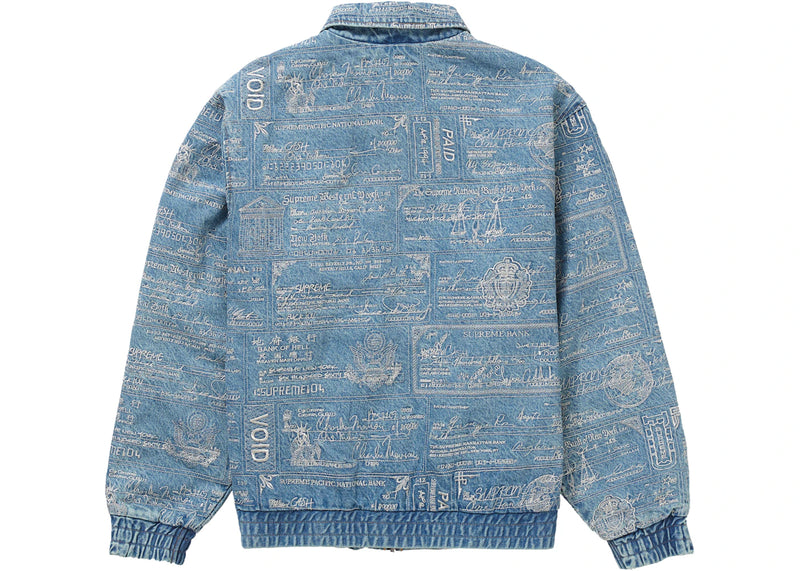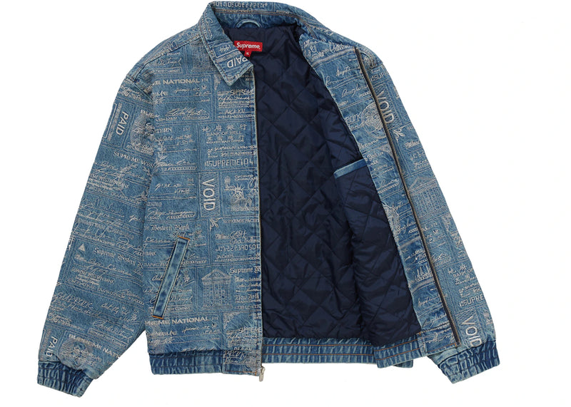The Supreme Checks Embroidered Denim Jacket Blue is now available at Side Kicks!