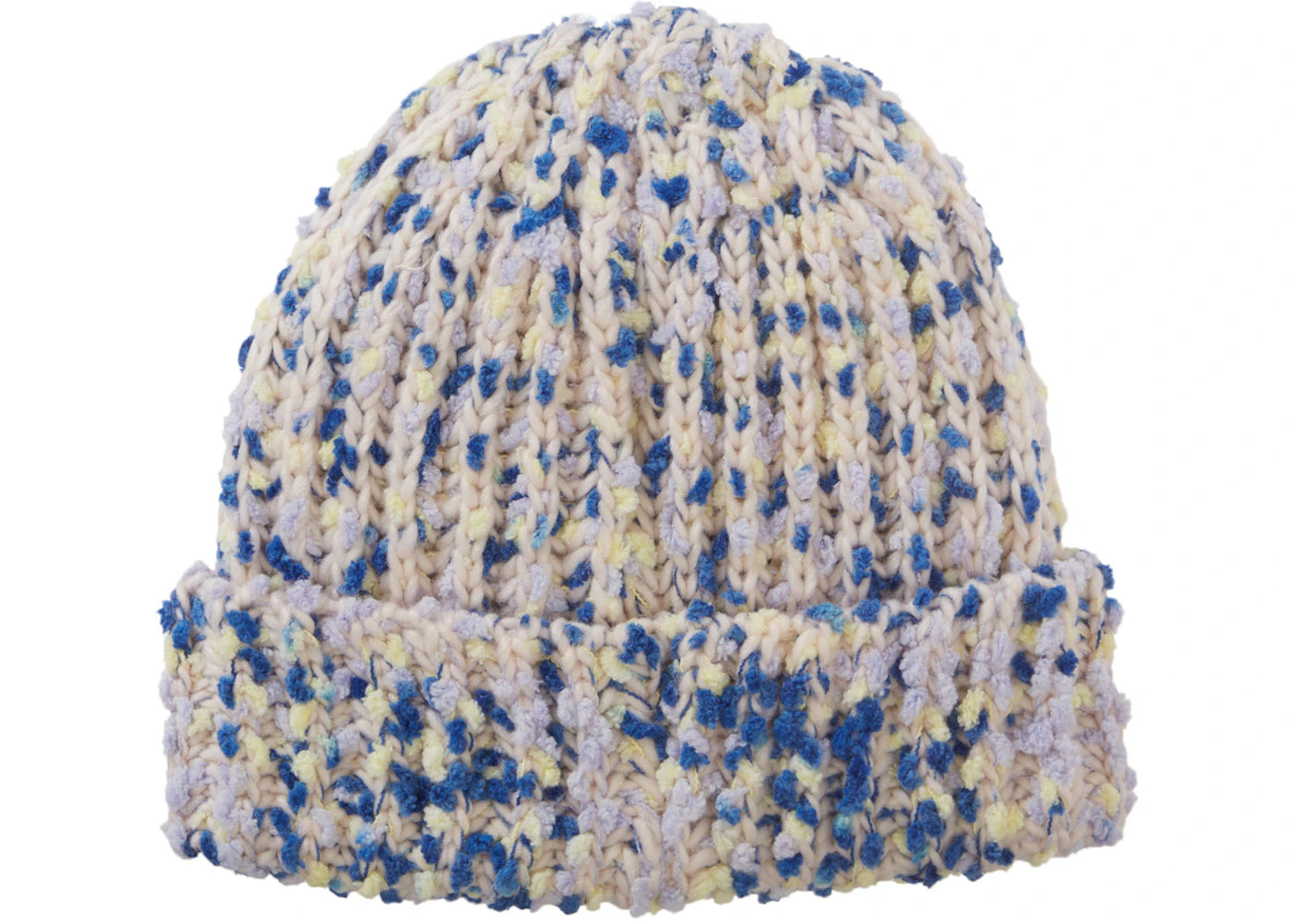The Supreme Chenille Beanie Lavender is now available at Side Kicks!