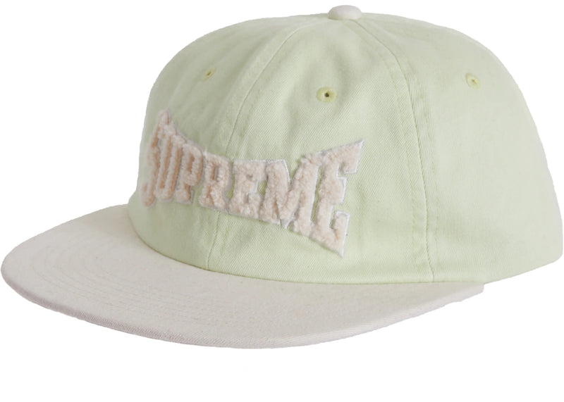 The Supreme Chenille Logo 6-Panel Pale Lime is now available at Side Kicks!