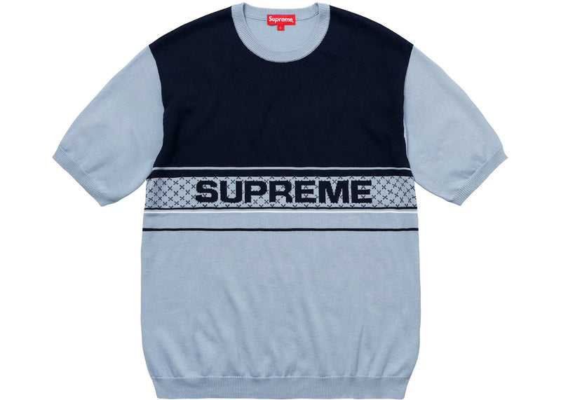 The Supreme Chest Logo S/S Knit Top Light Blue is now available at Side Kicks!