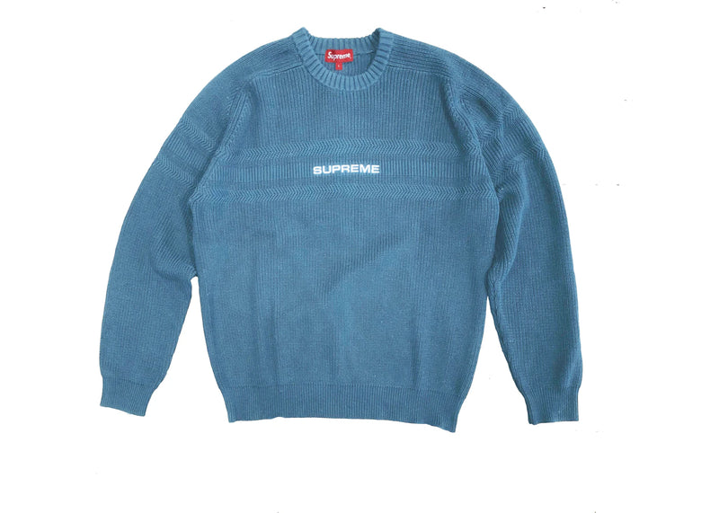 The Supreme Chest Stripe Raglan Sweater Dusty Blue is now available at Side Kicks!