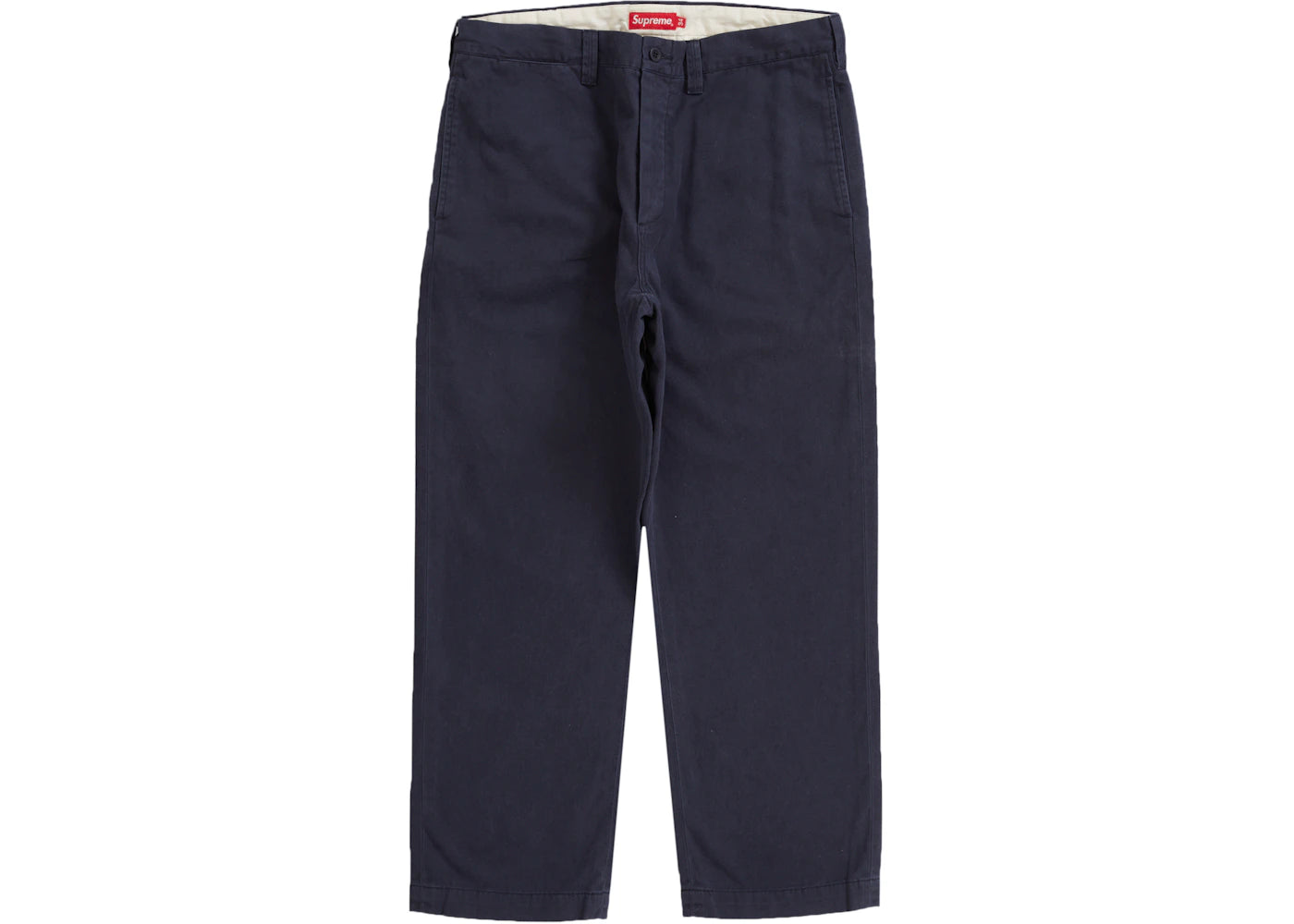 The Supreme Chino Pant Dark Navy is now available at Side Kicks!