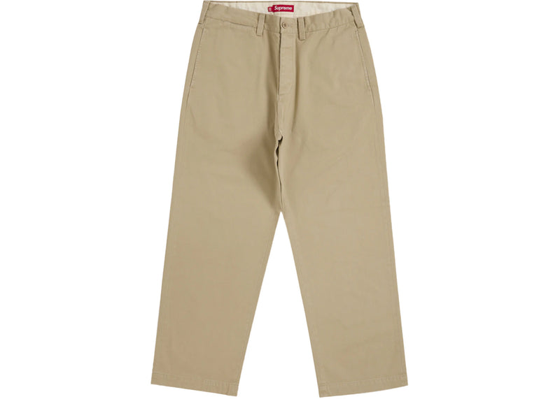 The Supreme Chino Pant (SS25) Khaki is now available at Side Kicks!