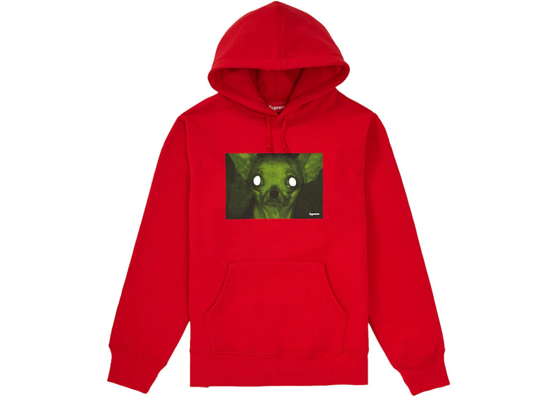 The Supreme Chris Cunningham Chihuahua Hooded Sweatshirt Red is now available at Side Kicks!