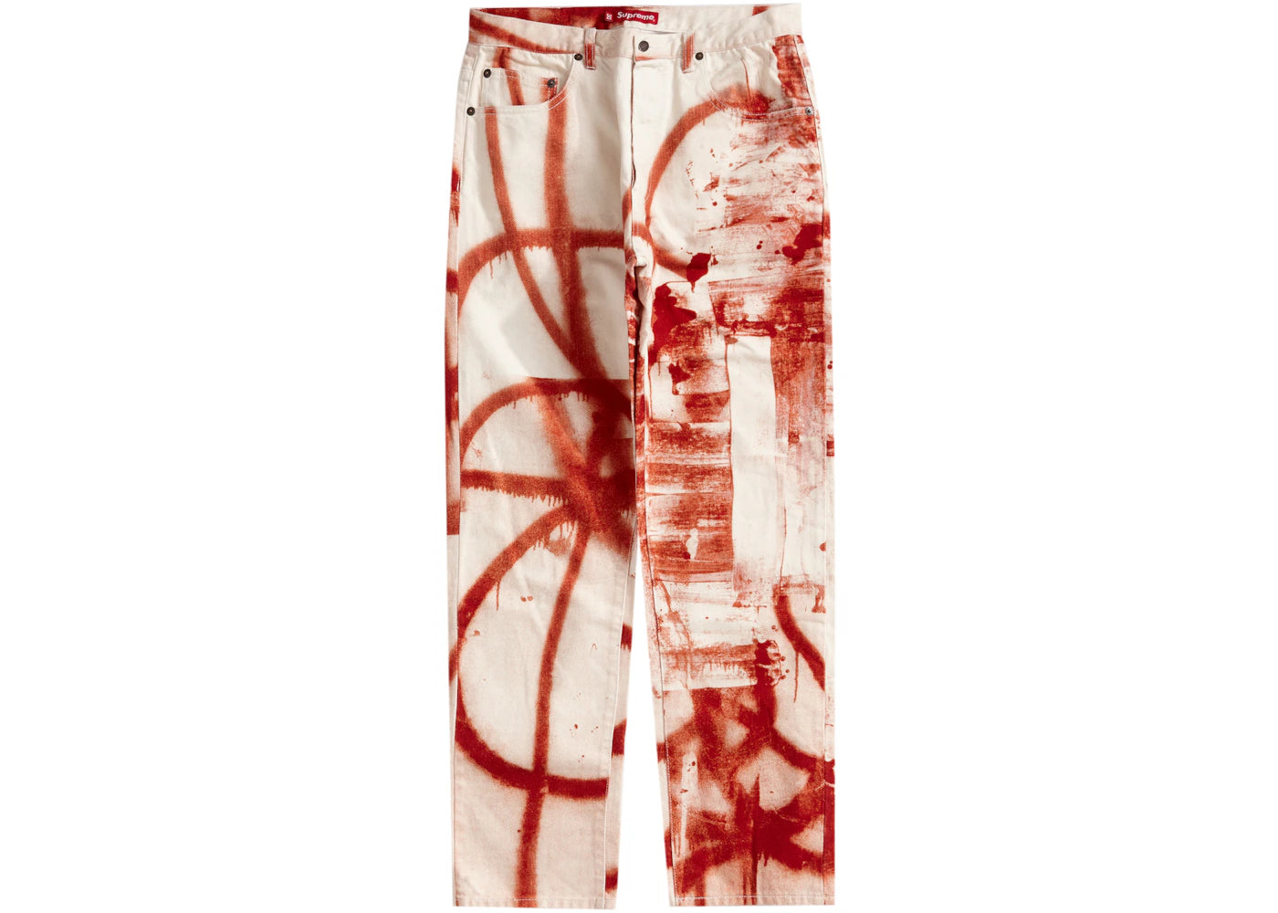 The Supreme Christopher Wool Regular Jean Red is now available at Side Kicks!