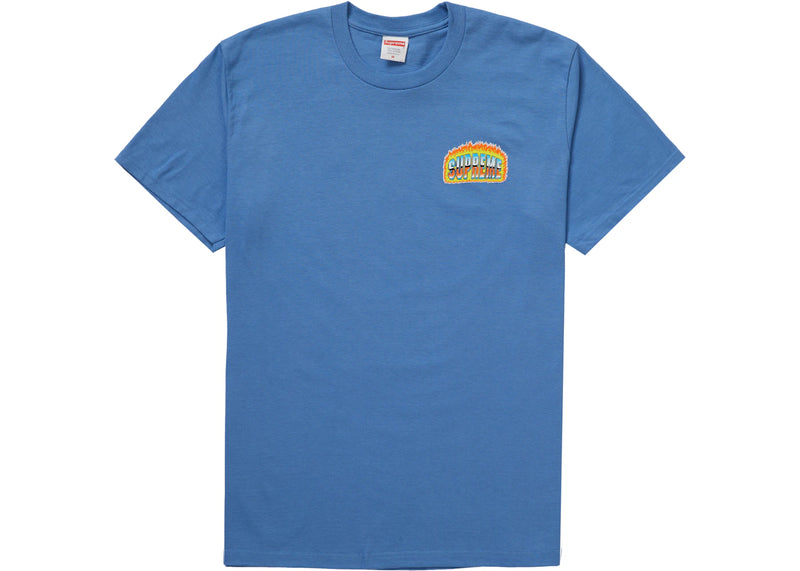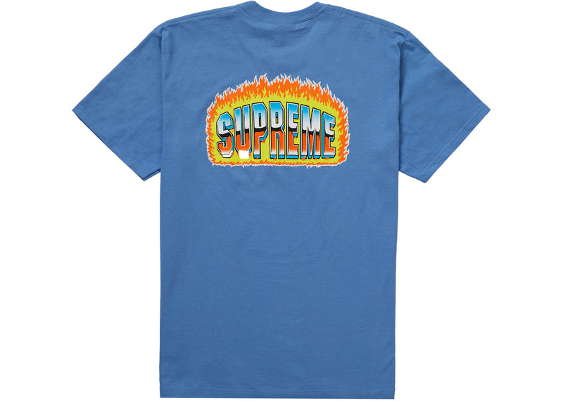 The Supreme Chrome Tee Dusty Light Royal is now available at Side Kicks!