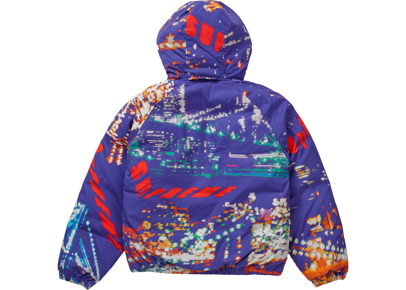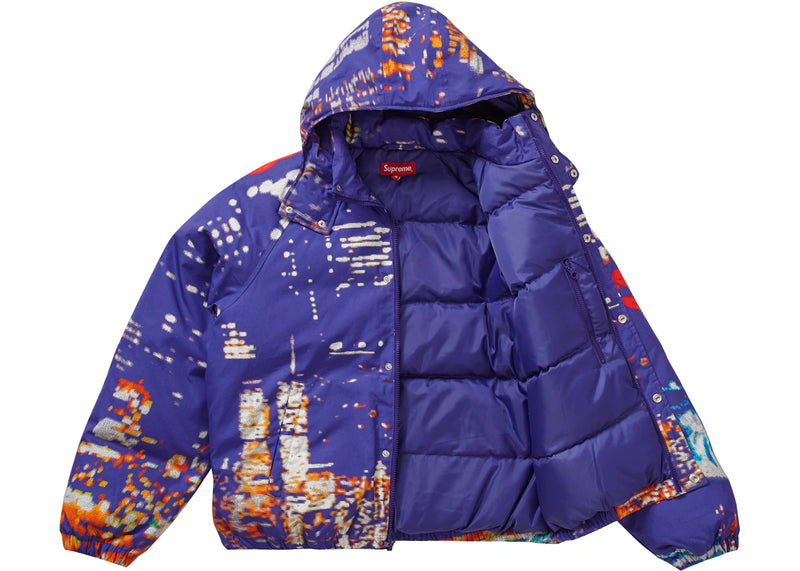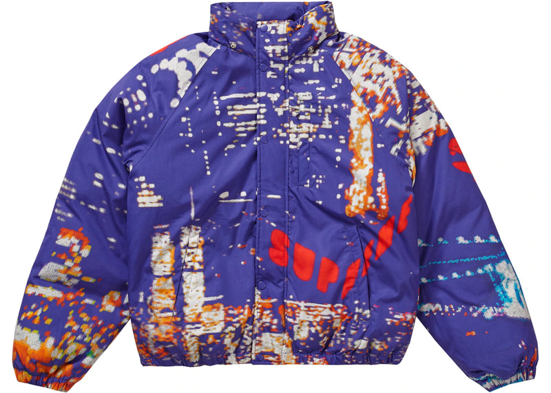 The Supreme City Lights Puffy Jacket Purple is now available at Side Kicks!