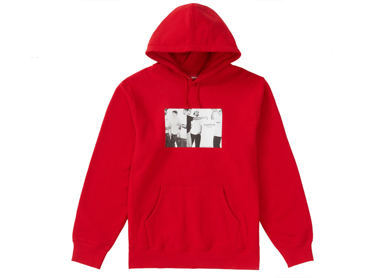 The Supreme Classic Ad Hooded Sweatshirt Red is now available at Side Kicks!