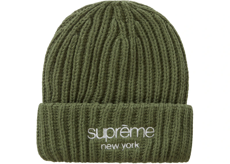 Supreme Classic Logo Chunky Ribbed Beanie Olive