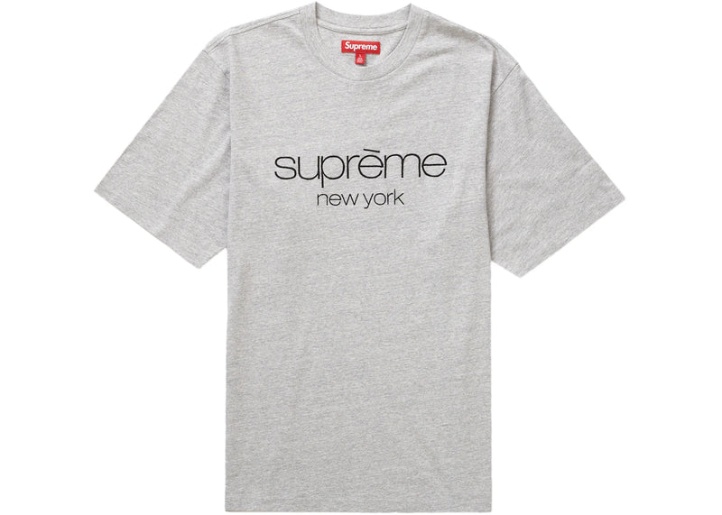The Supreme Classic Logo S/S Top Heather Grey is now available at Side Kicks!